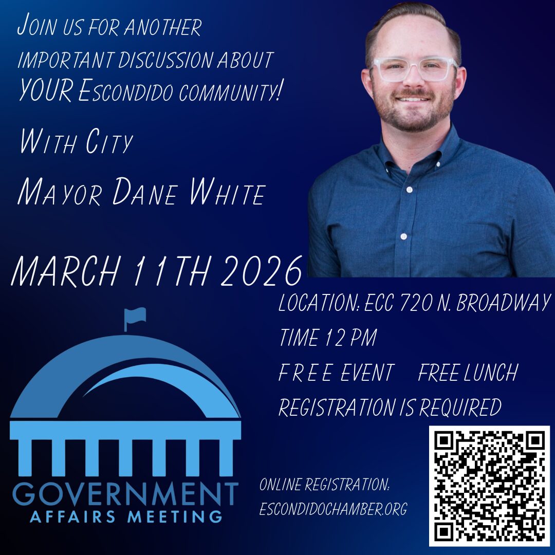 The Escondido Chamber of Commerce is all about our community. From the small mom and pop stores to the large companies, we are here to support you, your vision, and to make the region stronger by engaging businesses with the community via unique events, activities, and programs.
